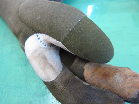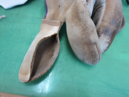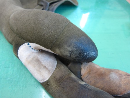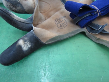2015.04.14 ゆがけ修理 修理課日記 鳥取県T様 束離 帽子革替 完了 中指が気になりました… 静岡県M様 他社品 中指ほころび縫い 完了。何気に指縫は高額修理になります。 福岡県I様 雨露離4ッ化 とりあえず展開、副え指準備 完了 福岡県N様 弊社品 捻革替 弊社の古い物のお約束の桜漆の縁と銘印 完了